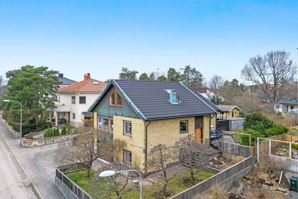 Omläggning av tegeltak på villabyggnad på Hjortsbergsvägen i Hägersten, Mälarhöjden i södra Stockholm.